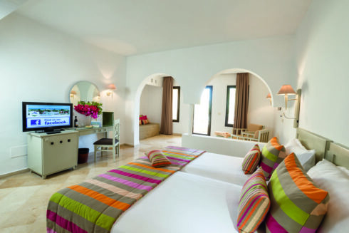 361 Zimmer, auf Hotelzimmer und Bungalows verteilt, 9 Suiten im Haupthaus. Ausstattung: Badewanne und/oder Dusche, WC, Föhn, Kosmetikspiegel, Balkon oder Terrasse, Telefon, Fernseher, Safe, Minikühlschrank und Klimaanlage/Heizung.