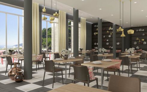 • Hauptrestaurant mit Außenterasse: Buffet mit kleinteiligen und lokaltypischen Speisenangeboten, verschiedene Kochstationen mit Live-Cooking