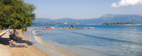 Der schmale, flach abfallende Sand-/Kiesstrand von Alykes liegt direkt vor der Anlage, Kontokali ist ca. 3 Kilometer entfernt und eine Bushaltestelle nach Korfu-Stadt befindet sich unmittelbar vor dem Hotel.