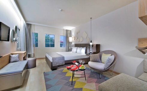 Die Poollandschaft des TUI BLUE Palm Garden ist der Hit bei den Kids! Mehrere Abenteuerrutschen sorgen garantiert für Spaß beim Plantschen. Der Kidsclub für verschiedene Altersstufen und ein eigenes Programm für Teenager in den Schulferien lassen keine Langeweile aufkommen, während sich die Eltern entspannt zurücklehnen können. Im BLUEf!tpark können sich alle gemeinsam austoben und bei Programmpunkten mit Edutainment-Charakter zusammen Neues entdecken. Für Babys gibt es eine Babyausstattung zum Ausleihen.