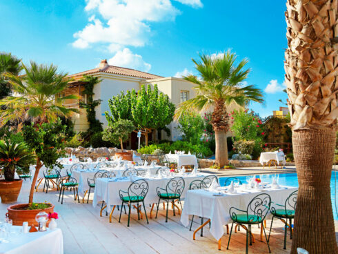 Panormo – Oberhalb des Marine Palace gelegen, zur kleinen Sandbucht ca. 200 m. Nur wenige Gehminuten bis zum Fischerdorf Panormo mit Cafés, Tavernen und einigen Einkaufsmöglichkeiten. Mehrmals täglich Busverbindung nach Rethymnon (ca. 20 km). Transferzeit ab/bis Heraklion ca. 1 bis 1,5 Stunden, ab/bis Chania ca. 2 bis 2,5 Stunden.
