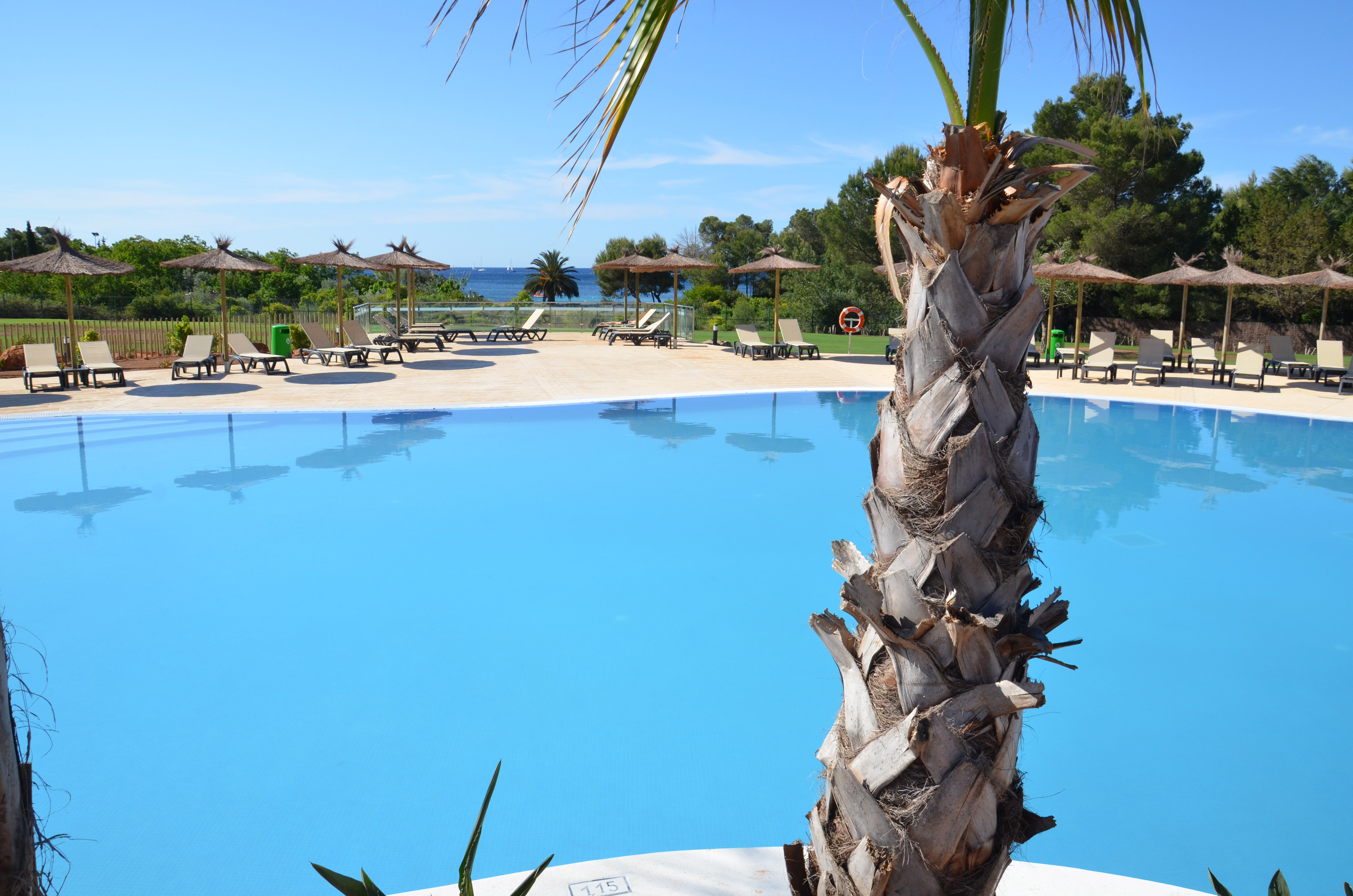 Ein einmaliges Urlaubserlebnis erwartet Sie in der wunderschönen Bucht von Santa Eulalia. Die Anlage liegt ruhig inmitten eines großen Pinienwaldes und je nach Lage des Zimmers gelangen Sie nach 200 – 400 m zum öffentlichen flach abfallenden Sandstrand (leicht kieselig). Am Strand stehen Liegen und Sonnenschirme bereit (Fremdanbieter, gegen Gebühr). Der Naturstrand liegt von den Wohnbereichen je nach Lage der Appartements ca. 200 bis 400 m entfernt. Die 315 Zimmer (Appartements) verteilen sich auf einer Fläche von ca. 70.000 m².