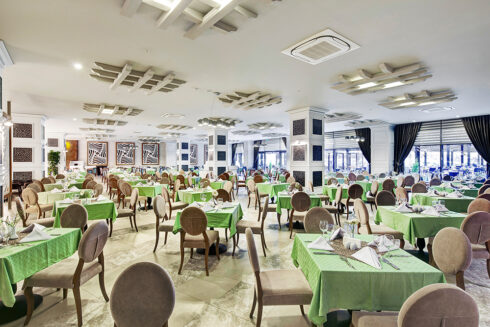 - 5 À-la-carte-Restaurants: Mai Thai (Asiatisch), Sofra (Landestypisch), Al Baccio (Italienisch), 4 Seasons (kulinarische Themenreisen), Fischrestaurant (Reservierung erforderlich, jeweils 1 x pro Woche/Zimmer inklusive, nach Verfügbarkeit, angemessene Kleidung erwünscht)